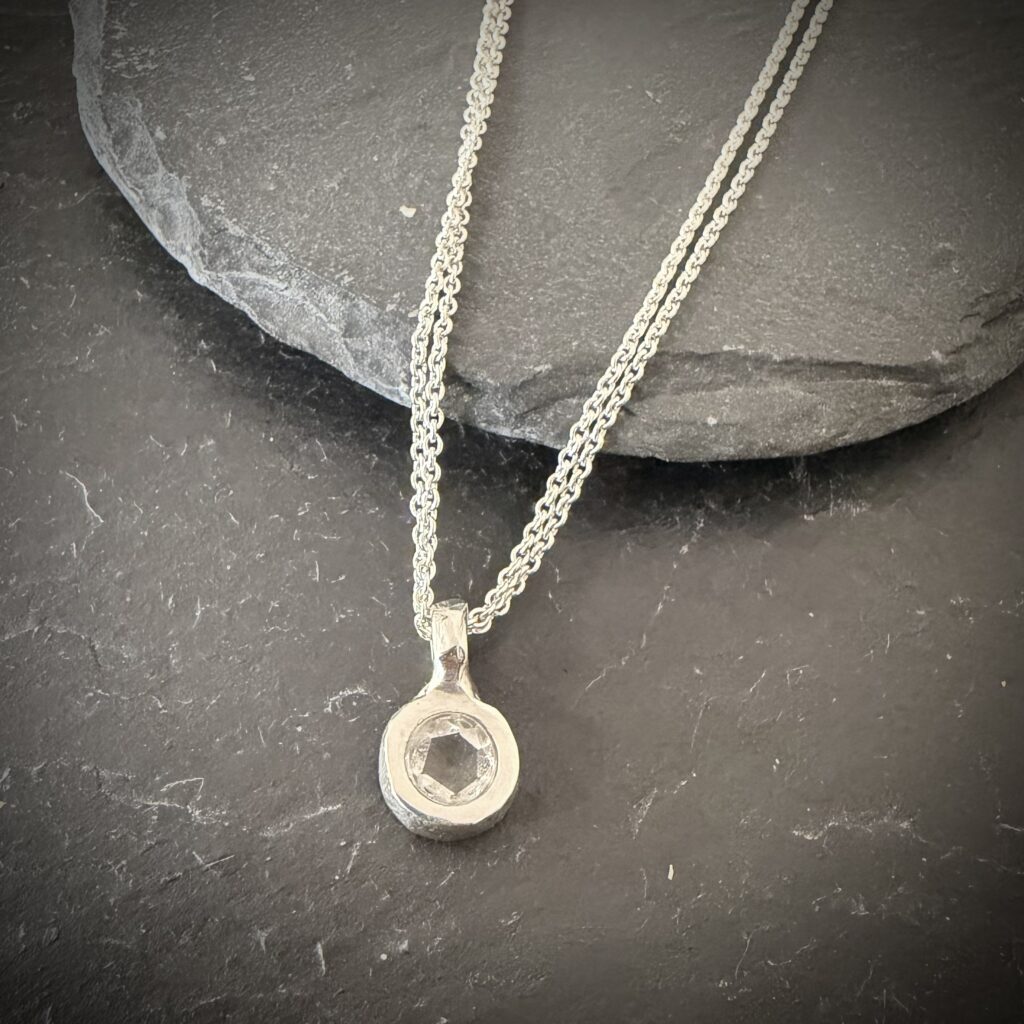 Collier en argent double chaîne avec pendentif en topaze incolore